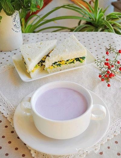 10、菠菜三明治+紫薯奶昔