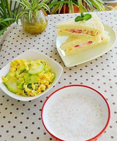 13、水果三明治+青瓜炒蛋+牛奶炒米