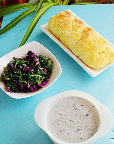 12、酥粒辮子面包+紫甘藍(lán)拌菠菜+核桃芝麻牛奶麥片