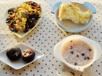 3、面包+木耳炒雞蛋+赤豆粥+煮馬蹄